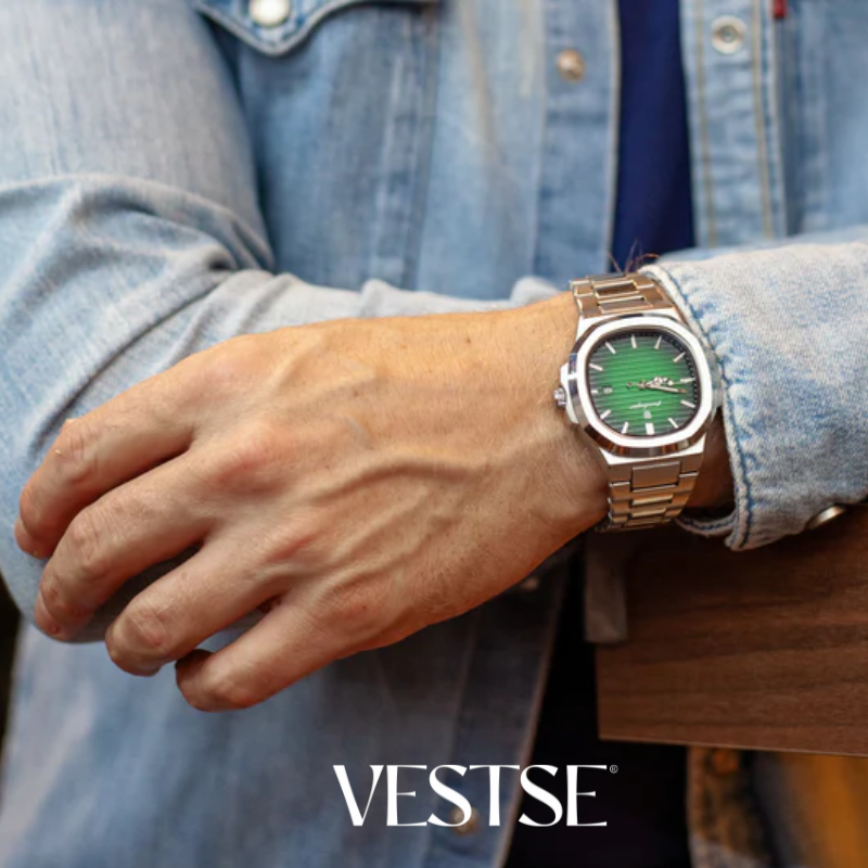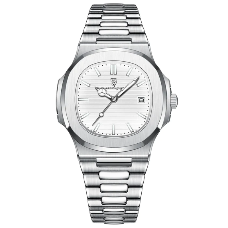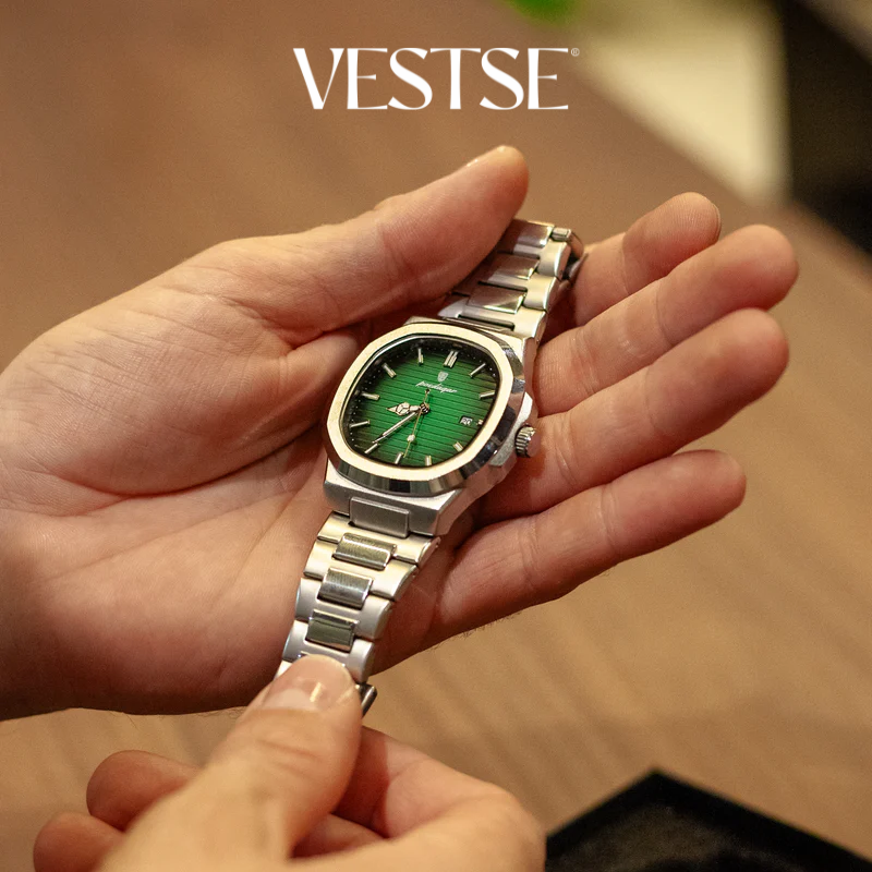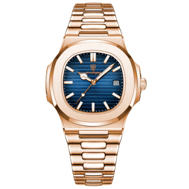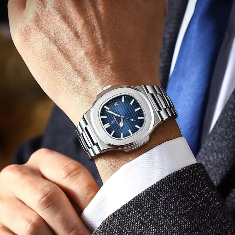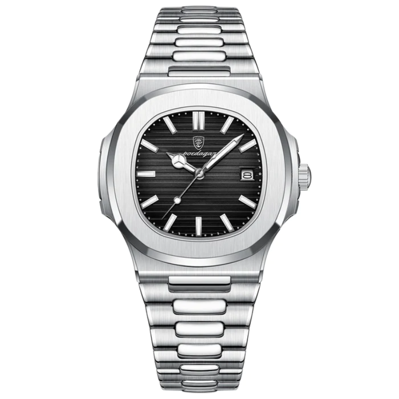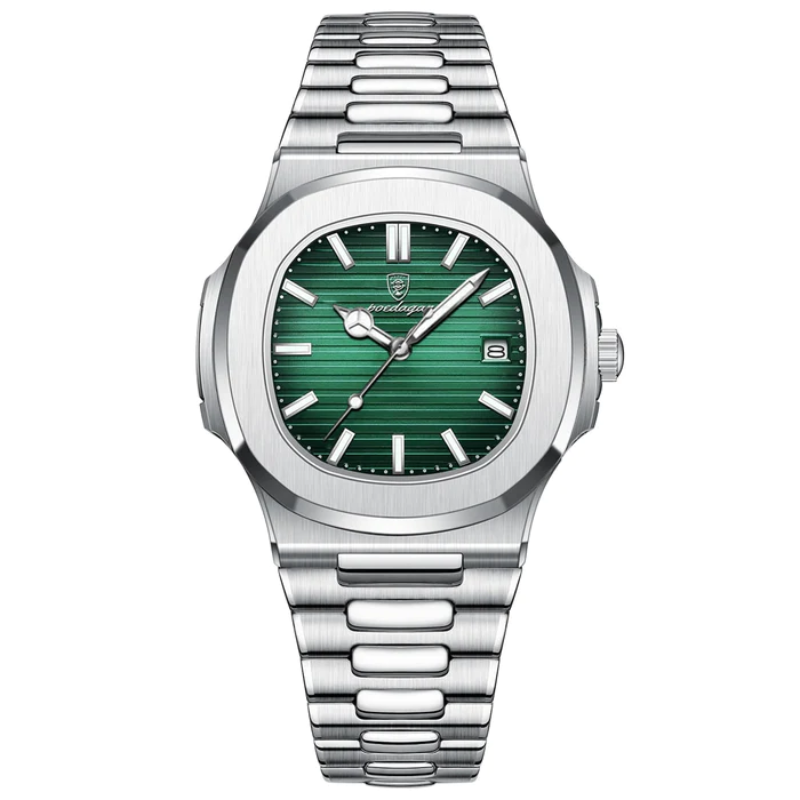 Construído inteiramente em Aço inox 904L com mostrador em vidro de Safira