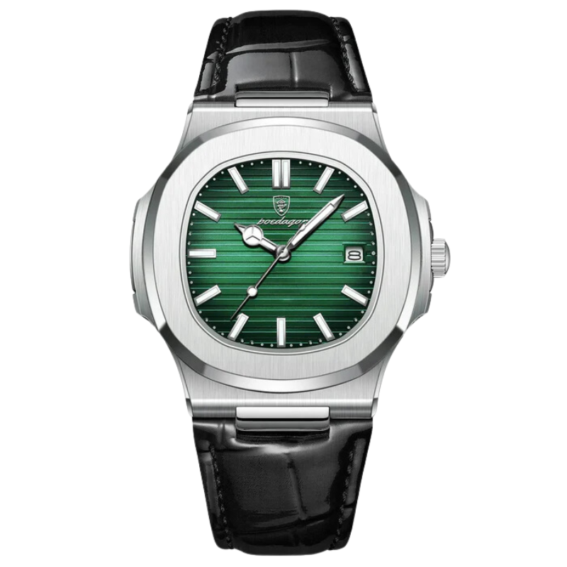 Construído inteiramente em Aço inox 904L com mostrador em vidro de Safira