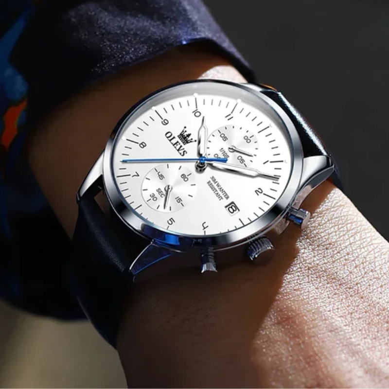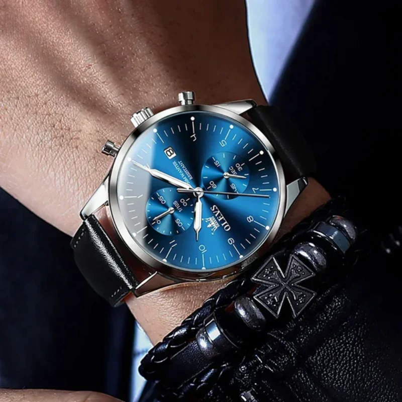 Construído inteiramente em aço inox e vidro de safira. Resistente a água em 3ATM
